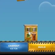 Une fois la mise définie, cliquez sur le bouton jaune « BUILD » pour lancer la construction. La première maison apparaît, suspendue à la grue, se balançant au-dessus du socle. Observez le mouvement, anticipez le rythme, puis cliquez au moment optimal pour déposer la structure. Un placement réussi ajoute un multiplicateur à votre cagnotte. Un placement raté fait s’écrouler la tour — fin de partie.